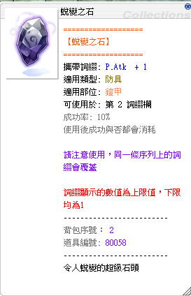 同時也會【記錄該裝備的類型、可裝配部位】,產生『蛻變之石』