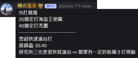 到這邊 每個部位裝備有個5S應該不是太難