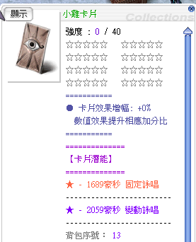 卡片部分: 以量大、好打的怪物為主,ex:波利、蒼蠅、禿鷹。