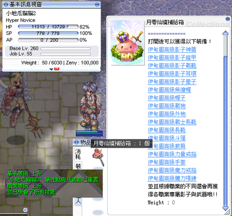 轉職會直接Base Lv 260 Job Lv 55並學習該職業所有技能[還送新手包]