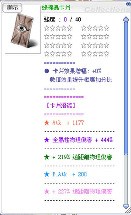 3. 影響 野外/副本/道館打到的卡片 及 道館打到的時裝/影子裝 詞綴數值
