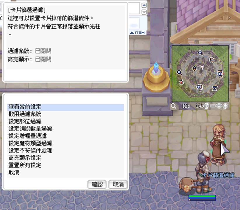 主城上方右手邊有「卡片篩選過濾」NPC可以自訂篩選過濾