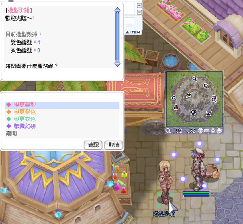 職業太醜的話,主城左上有「造型沙龍」可以變漂亮