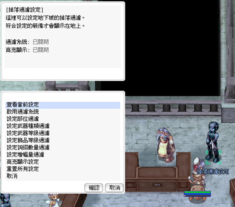都各別有該地下城的「掉落過濾設定」NPC可以使用