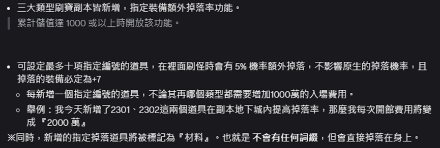 以上3個地下城/道館,如果累儲1000會有指定道具增加掉落率5%的超讚功能