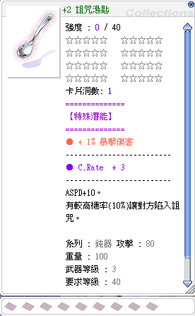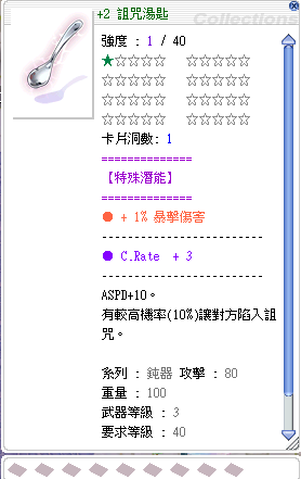 當詛咒湯匙為1星時,這1%暴傷會變成 1 + (1 * 1 / 100) 也就是還是等於 1。並不會變成 2 哦~